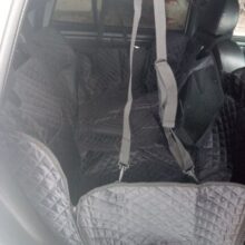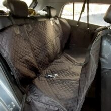 Our Dog Seat Cover helps you keep your backseats covered with this snap-and-go seat cover that protects your vehicle from dog hair, scratches, and drool.