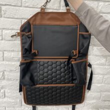 Very high quality seat organizer. Neat sewing. Back side with non-slip coating. In addition to pockets, there are two carabiners on the sides. 5 stars out of 5. Thank you