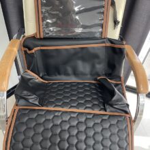good car seat organizer, made of eco leather which is super easy to clean with a damp cloth. all the pockets will be difficult to fill completely. a whole portable office for a small passenger :) :)